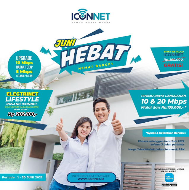Program promo ICONNET Bundling Electrinet Lifestyle ini menawarkan kemudahan bagi pelanggan baru ICONNET untuk melakukan tambah daya PLN dengan harga promo khusus sebesar Rp 202.100 dan berlaku sampai 30 Juni 2022 ini.